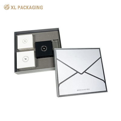 | Skincare Gift Sets | 15x12x8cm box, velvet lining | Charcoal base, silver foil "Gift Set" stamp, 2-slot insert |