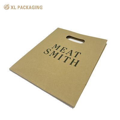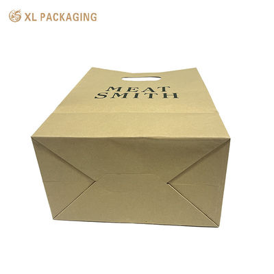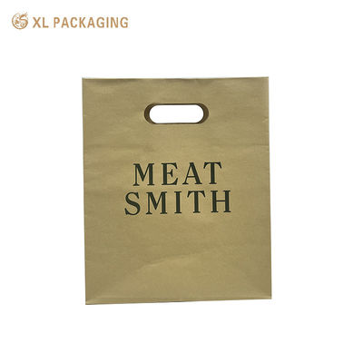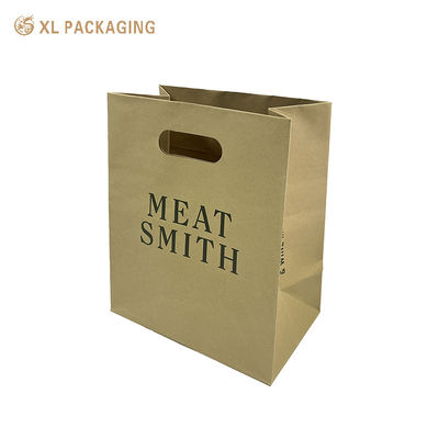 The paper shopping bag is made of kraft paper, no extra strings handle. bag itself cut a handle hole. This design will save the bag cost, but it is also means the bag cannot hold heavy stuff. If your business products are light, such as clothes, flowers,bread... you might choose this style box.