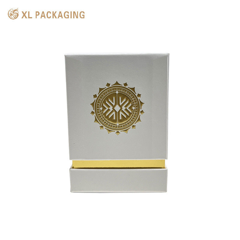 Luxury Perfume White Paper Gift Box with Hot Stamping – Custom Logo Lid and Base Packaging