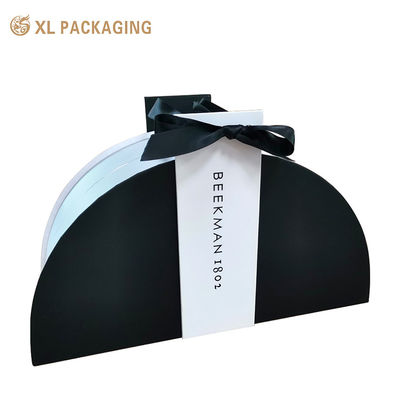 Our semicircular gift box features a luxurious design in the classic color scheme of black, white, and silver, elevating any gift-giving occasion with its sophisticated aesthetic.