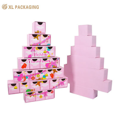 XL Packaging Custom Packaging Box Factory 24pcs Drawer Gifts Boxes Paper Cosmetic Christmas Advent Calendar Packaging Box With Hot Stamping Inner Outer