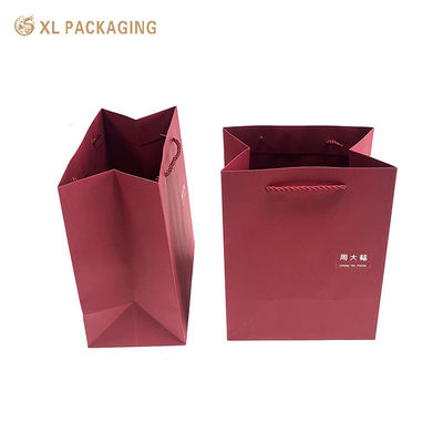 XL Packaging Custom Packaging Factory Folder Paper Bag Wine Red Color Coated Paper Hand Bag For Gift Box Packaging Gift Shipping Bag With Your Own Logo